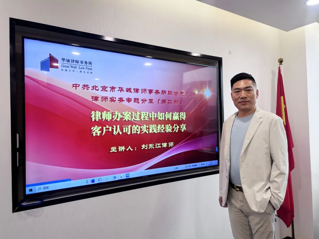 8月15日下午,中共北京市华城律师事务所联合党支部主办的2025年度党员律师专题分享会(第二期第2场)在华城律师事务所如期举行。本次分享会特邀事务所合伙人、党员律师刘东江主讲,由华城联合支部组织委员徐国兵律师主持,以《律师办案过程中如何赢得客户认可的实践经验》为主题,为全所律师带来了一场极具实用价值的实务经验分享,吸引了所内众多律师积极参与。